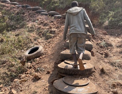 🙌🏽 Amahoro! ♻️ ¡Ya se han colocado los primeros neumáticos para la escalera sostenible de acceso a la fuente y el lavadero! 🌾 Aún quedan 2/3 del total del camino…
