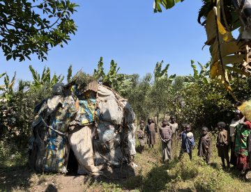 Esta mañana Twenge ha estado recorriendo el poblado batwa de Gatonde, acompañados por Bosco, el…