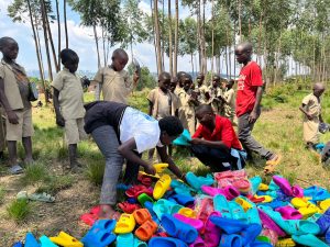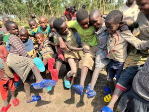 Por último, al inicio de los años académicos 2022/23 y 2023/24 distribuimos calzado a todos los niños y niñas de Gatonde, de forma gratuita. Este gesto goza de gran importancia debido a que la gran mayoría de los niños van siempre descalzos y que para ir al colegio tienen que caminar hasta la aldea vecina de Kirwati. Caminar descalzo a diario puede provocar lesiones musculares y heridas en los pies, sobre todo si se hace por terrenos irregulares: forzamos nuestra musculatura y nuestras articulaciones, y no solo de los pies, sino también de tobillos, rodillas y caderas. La felicidad de estos chicos fue, una vez más, muy palpable, así pues desde Twenge seguiremos caminando junto al pueblo batwa y su gente, nuestra familia.