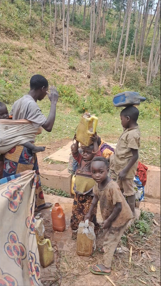 💫 En este bonito y soleado día estamos muy felices de comprobar que la fuente de Gatonde sigue abasteciendo a su población a diario, siendo además un punto de reunión lleno de vida para los habitantes de la aldea batwa 🇧🇮